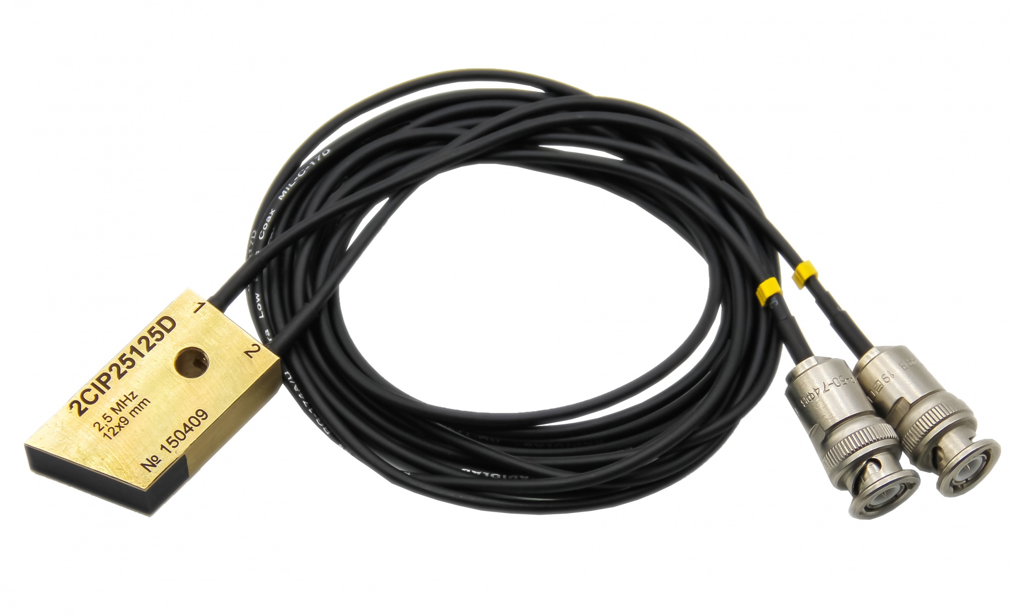 Ультразвуковой иммерсионный двухканальный  преобразователь  2СIP25125D (Т02.27 П211-2-12.5-2.5Д) предназначен для работы в составе автоматизированной установки ультразвукового контроля труб на базе измерительной системы ДЭКОТ (прозводства ООО ЦНТУ "Экоцентр", г.Таганрог).  Используется для поиска  поперечных дефектов.